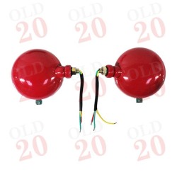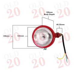 Complete side mounted headlamp units with bulb. Sold as a pair, these lamps have the old style tractor logo lenses and red bodies.