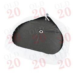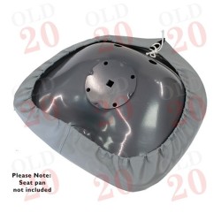 A white vinyl seat cushion to suit most vintage metal seat pans. This cushion secures in place using a tie on cord around the lip of the seat pan.